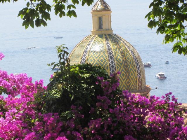 The ceramic dome of the church of Our Lady of the Assumption in Positano on the Amalfi Coast.