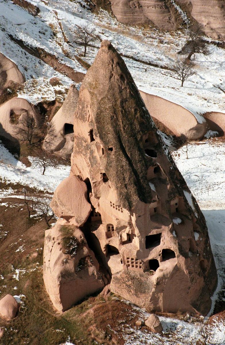 {"ops":[{"attributes":{"bold":true},"insert":"\"Fairy chimneys\""},{"insert":" create a surreal landscape in the "},{"attributes":{"bold":true},"insert":"Cappadocia "},{"insert":"region of Turkey. Created by volcanic eruptions and shaped by centuries of wind and rain erosion, each of these structures consists of a "},{"attributes":{"bold":true},"insert":"soft cone"},{"insert":" topped by a layer of harder rock. They reach heights of up to "},{"attributes":{"bold":true},"insert":"40 m"},{"insert":" (130 ft).\n"}]}