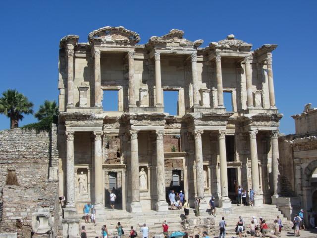 {"ops":[{"insert":"The "},{"attributes":{"bold":true},"insert":"Library of Celsus"},{"insert":" in "},{"attributes":{"bold":true},"insert":"Ephesus "},{"insert":"was built between "},{"attributes":{"bold":true},"insert":"A.D. 100"},{"insert":" and "},{"attributes":{"bold":true},"insert":"110"},{"insert":" by "},{"attributes":{"bold":true},"insert":"Gaius Julius Aquila"},{"insert":" in memory of his father, Tiberius Julius Celsus Polemaneanus, a former governor of Roman Asia, who is buried under the library. The library held 1,200 scrolls and was built facing east to make the best use of morning light; it was destroyed by an earthquake in A.D. 270. The facade was reconstructed between 1970 to 1978.\n"}]}