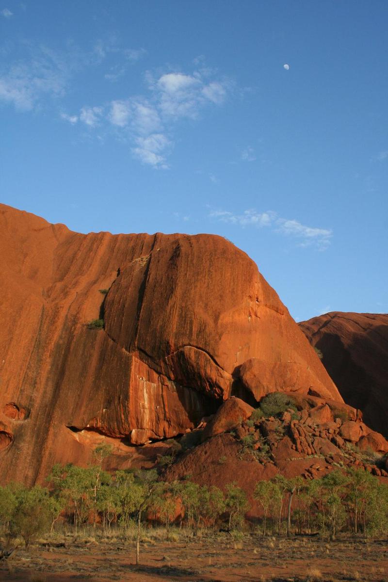 Ayers Rock changes colors throughout the day; this is its base at sunset.